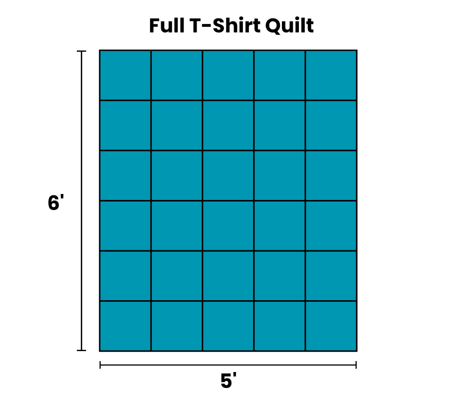 Custom T-shirt quilt – With a custom T-shirt quilt order you will need to send in multiple T-shirts. The usual size of the panel is listed below, be sure to make sure the graphic will fit that size. The price will depend on how large you want your quilt and the size of the quilt will be based on how many T-shirts you will need to send in. There will be different color options for the back of the quilt, which will be a fuzzy blanket material. See examples below of sizes and how many T-shirts you will need.