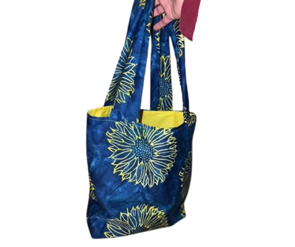 Yellow & Blue Sunflower Hand-Sewn Tote Bag